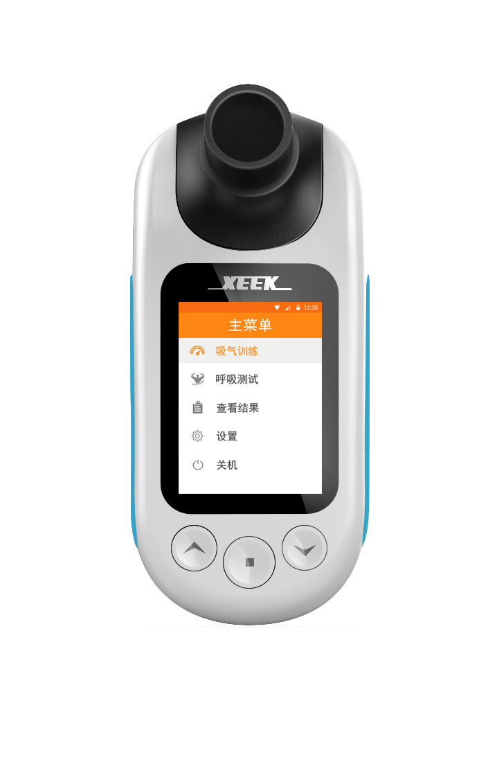 ② 呼氣檢測:嘴含住呼吸過濾器,緩慢吸氣,腹部鼓起,將肺部氣體盡量充滿,接著盡可能快速、用力的深呼氣,直到清空肺部空氣與腹部內(nèi)收,至少呼氣3次。